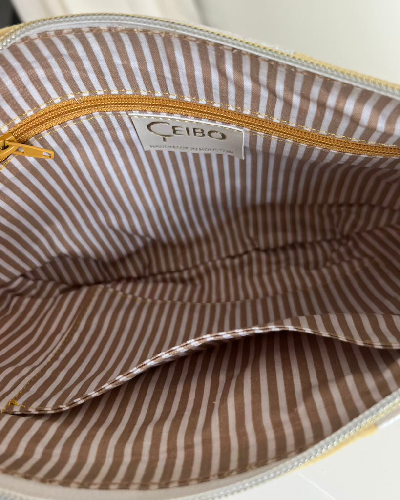 - Materials: Piñatex, an innovative textile made from pineapple leaf fiber. Cotton lining.