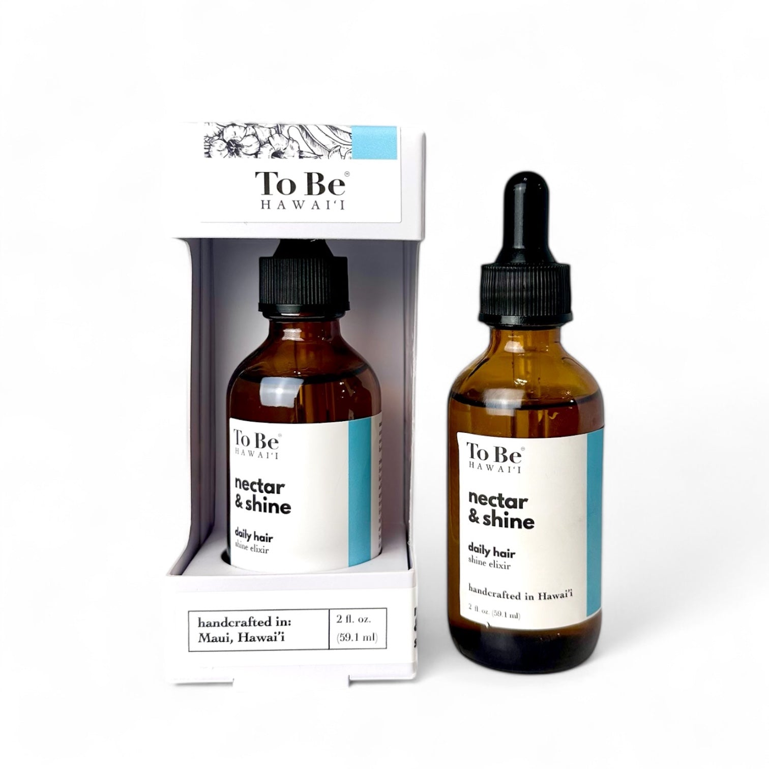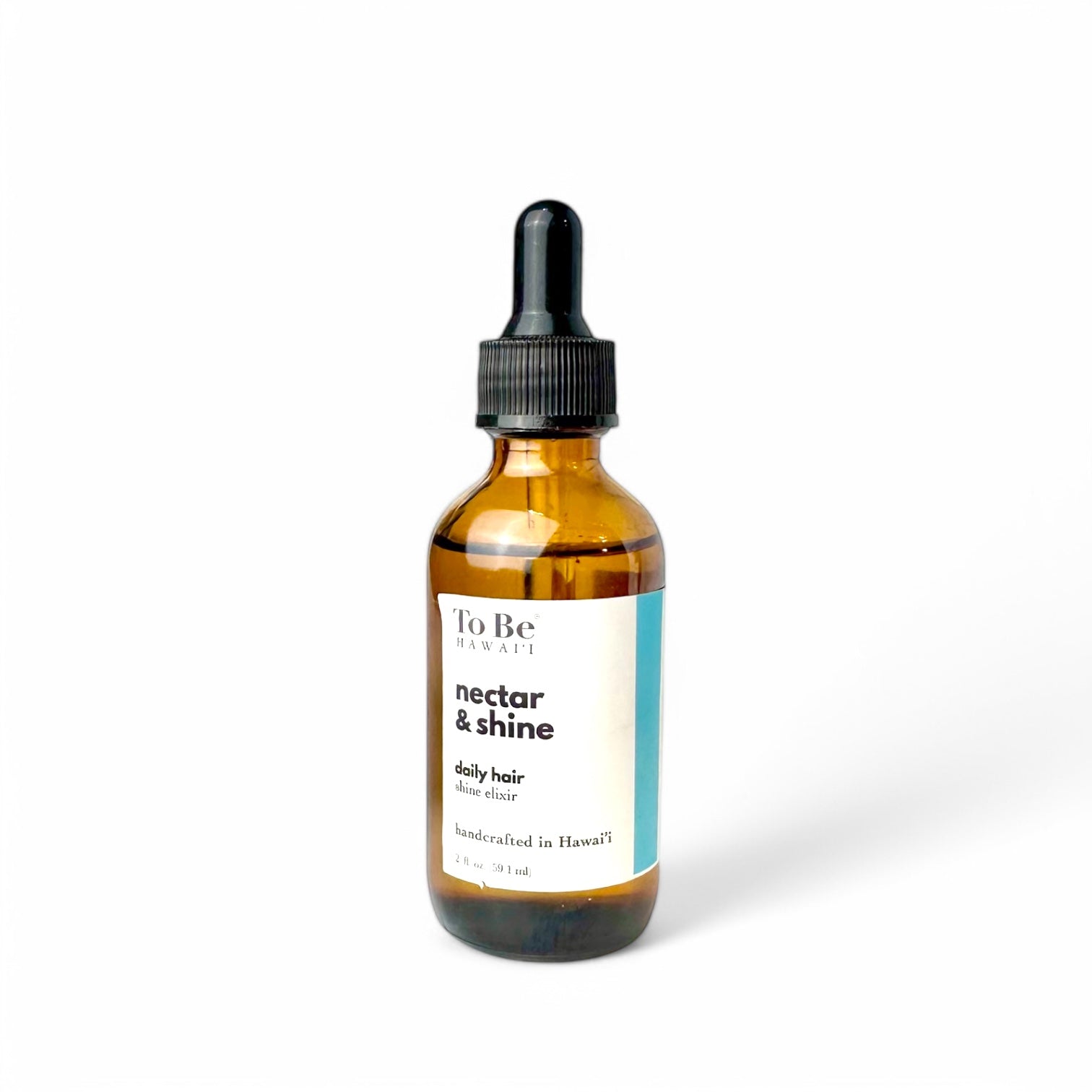 Are you ready for your hair to feel AMAZING? Nectar & Shine is a combination of all natural certified organic oils and botanicals, carefully selected for maximum absorption, conditioning, and shine. A delightfully light and refreshing aroma of jasmine, sweet cherries, and citrus. A versatile hair serum that can be used on wet or dry hair. Add this nourishing hair oil before styling products for a flawless blow dry. Finish your style with a couple drops to eliminate frizz and flyways & add a glossy shine. Use a couple drops at night and leave in for an infusion of conditioning. This serum is fast absorbing and also works great as a "dry" body oil! Always start with a small amount (2-3 drops), warm in hands and spread through ends working up to scalp. Add more as needed.