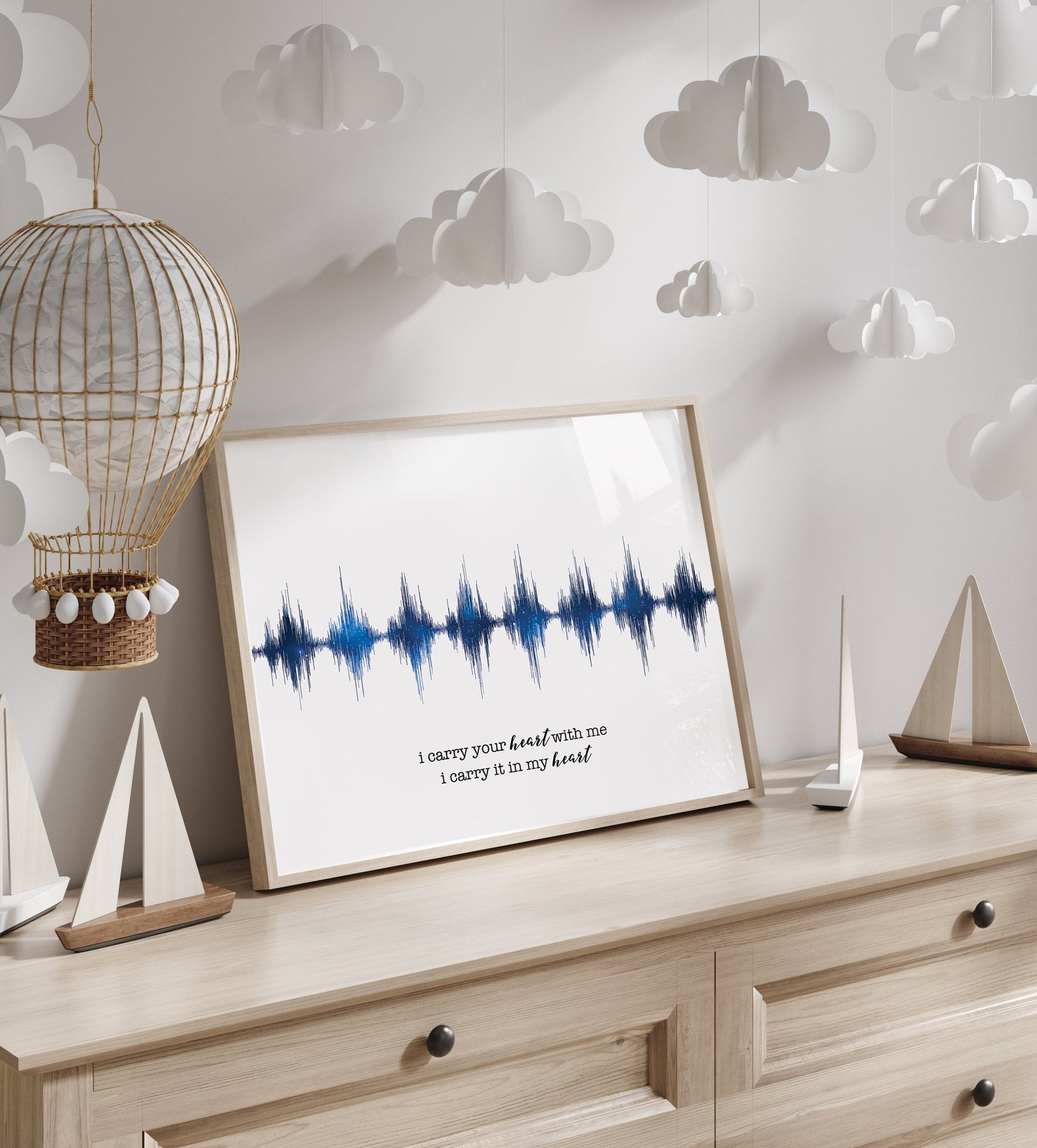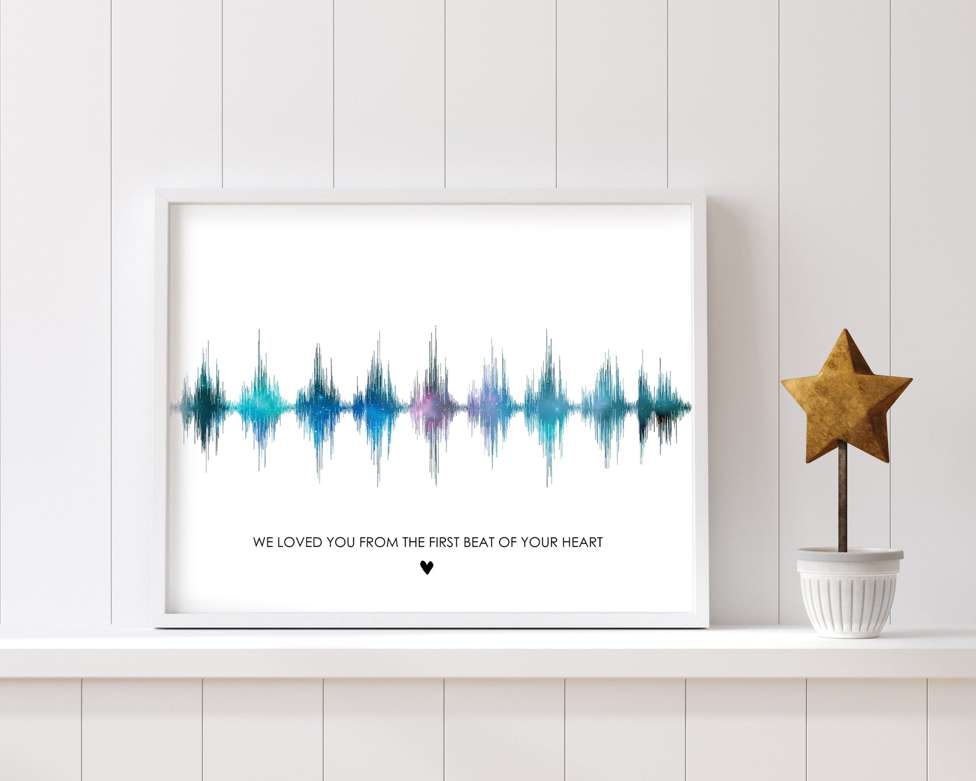 Introducing our exquisite Night Sky Baby Heartbeat Sound Wave Art – a masterpiece of art and emotion, designed to add a touch of magic to your nursery. This one-of-a-kind artwork beautifully combines the wonder of the night sky with the precious sound of your baby's heartbeat.