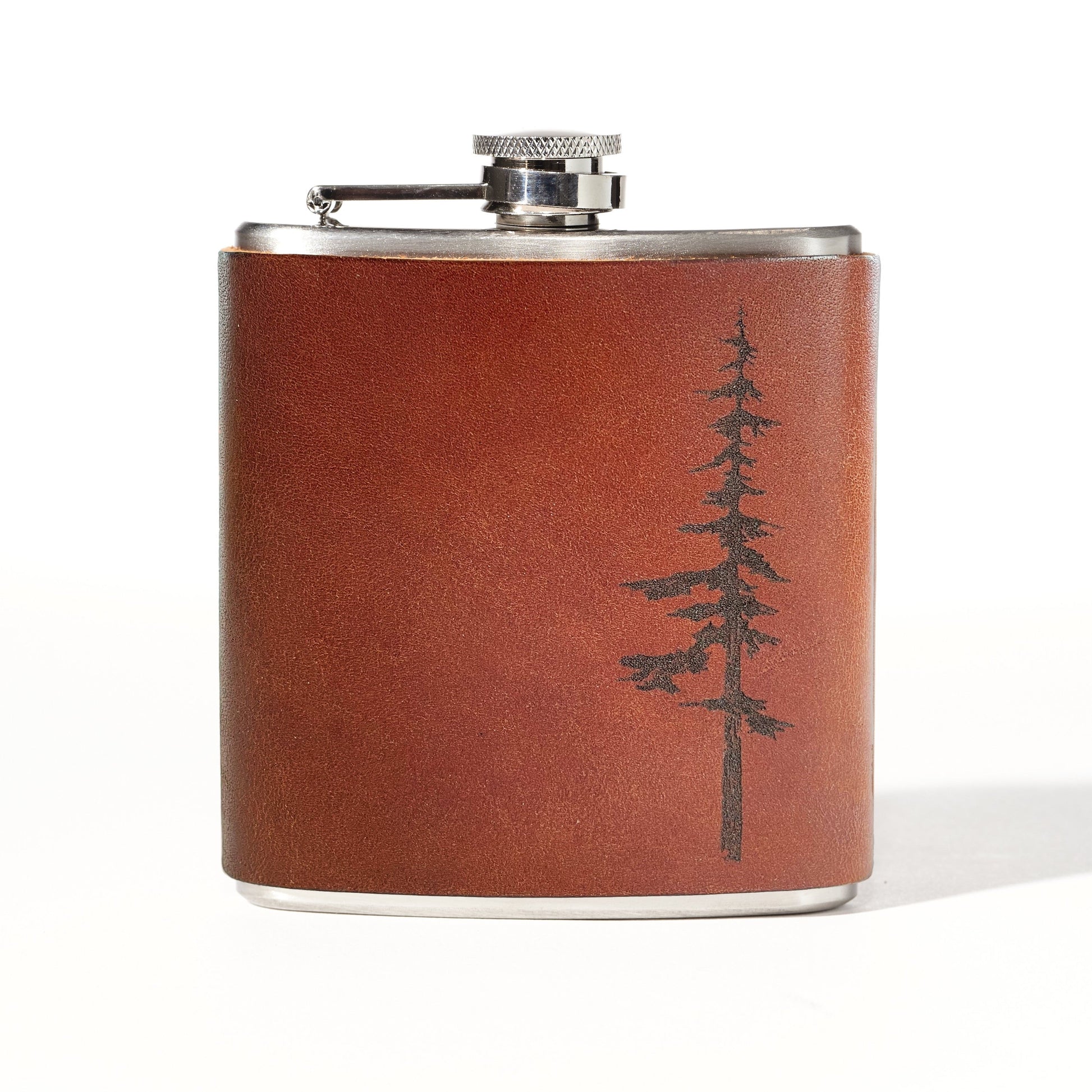 The leather is cemented to the stainless steel flask for durability, and sealed with a water resistant sealer so that it can be carefully rinsed out.