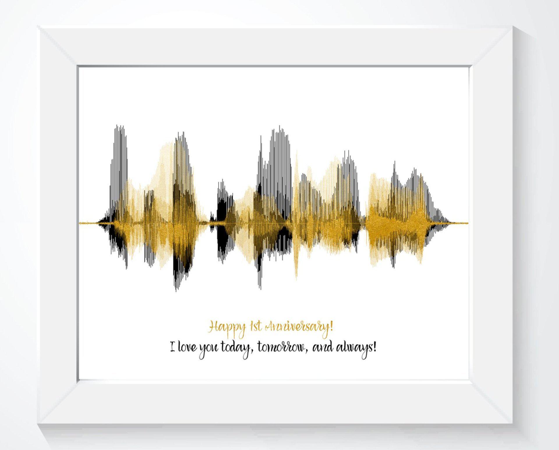 A perfect 1st paper anniversary gift idea! A personalized sound wave art print is a gift that speaks from the heart. A unique and memorable way to convey your personal message for your anniversary or any occasion.