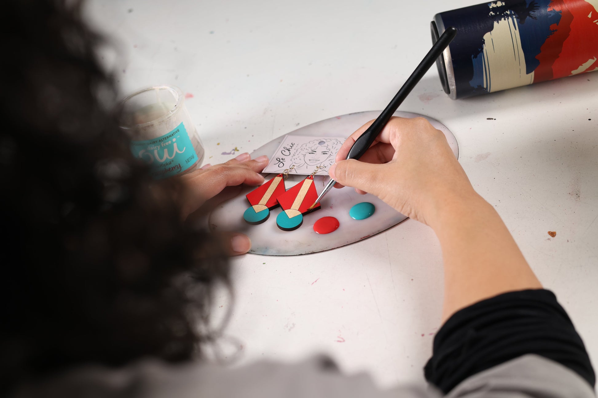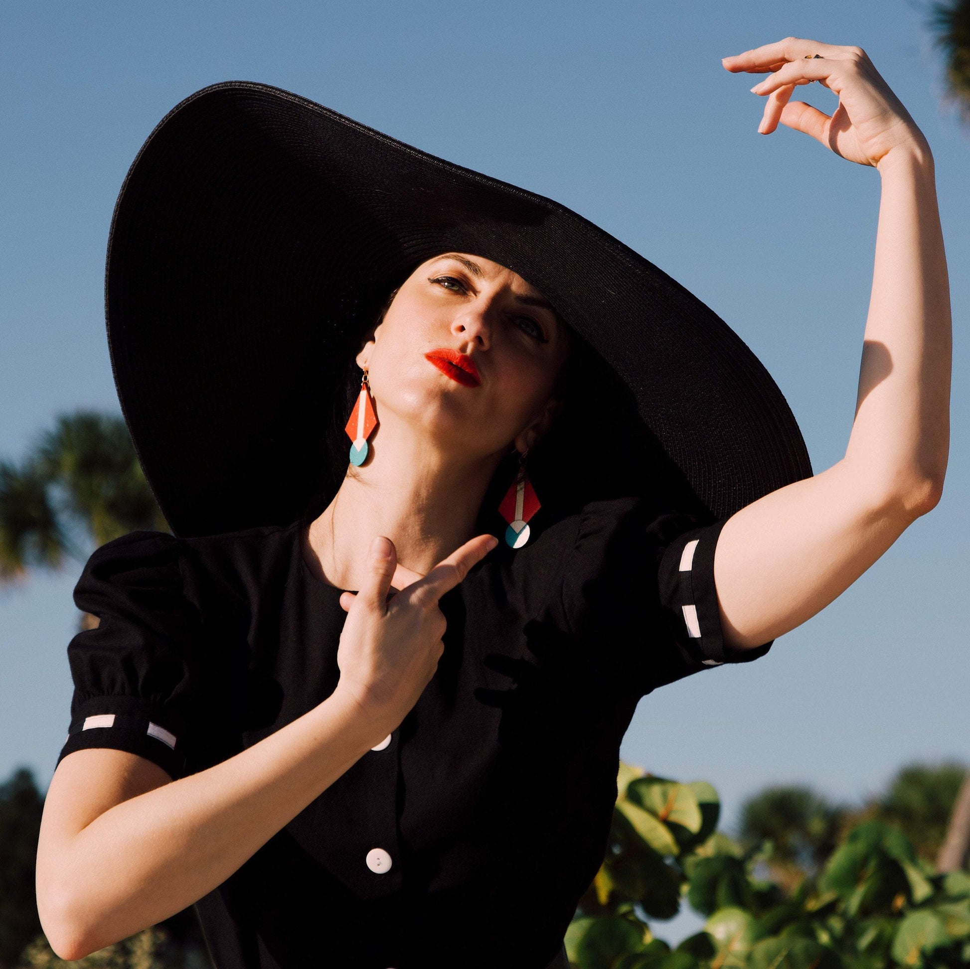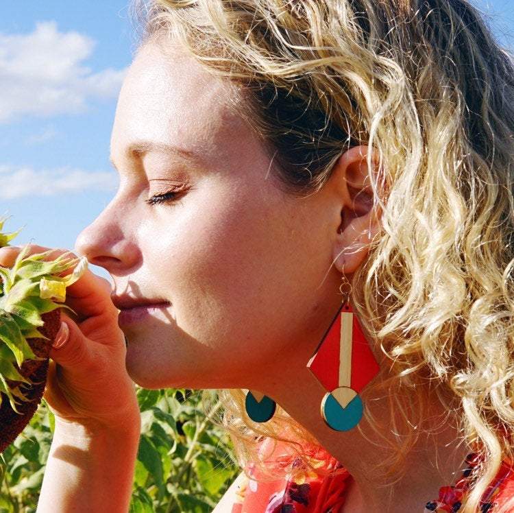 Inspired by Ocean Drive in Miami Beach, these Primary Color Art Deco earrings are sure to make a statement. Because these earrings are made of wood they are extremely light and won't weigh your earlobes down.