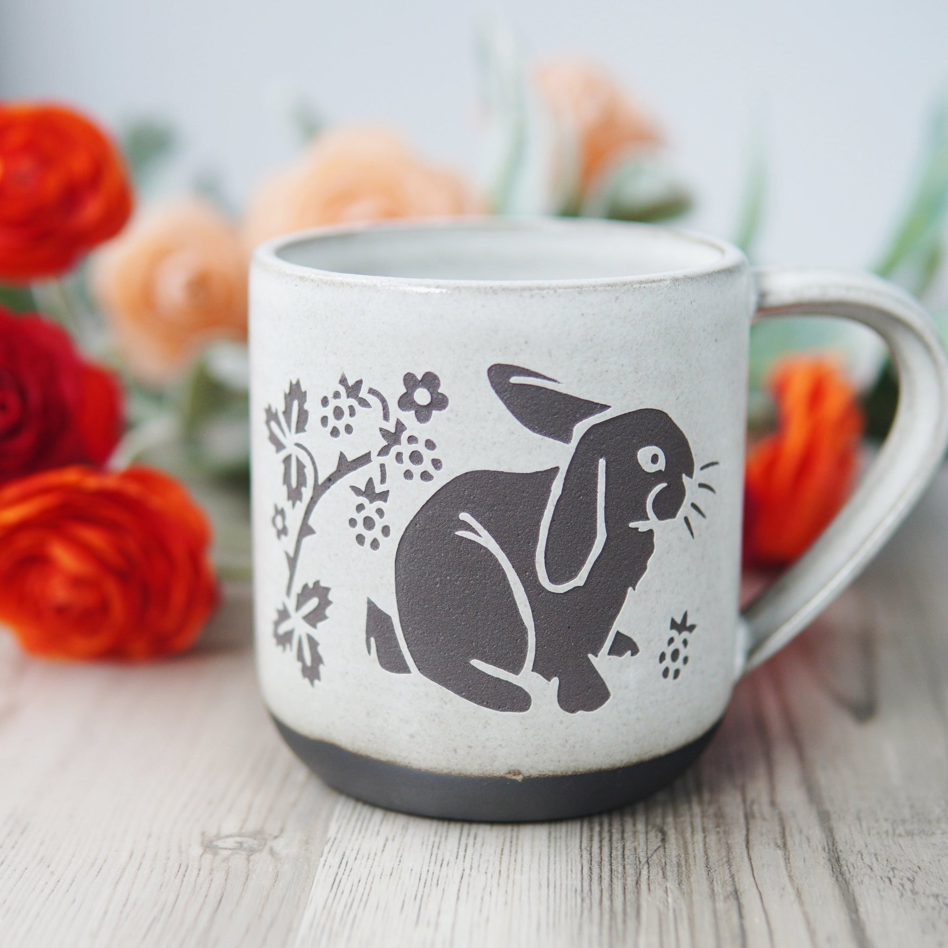 Rabbit Mug, Farmhouse Style Handmade Pottery