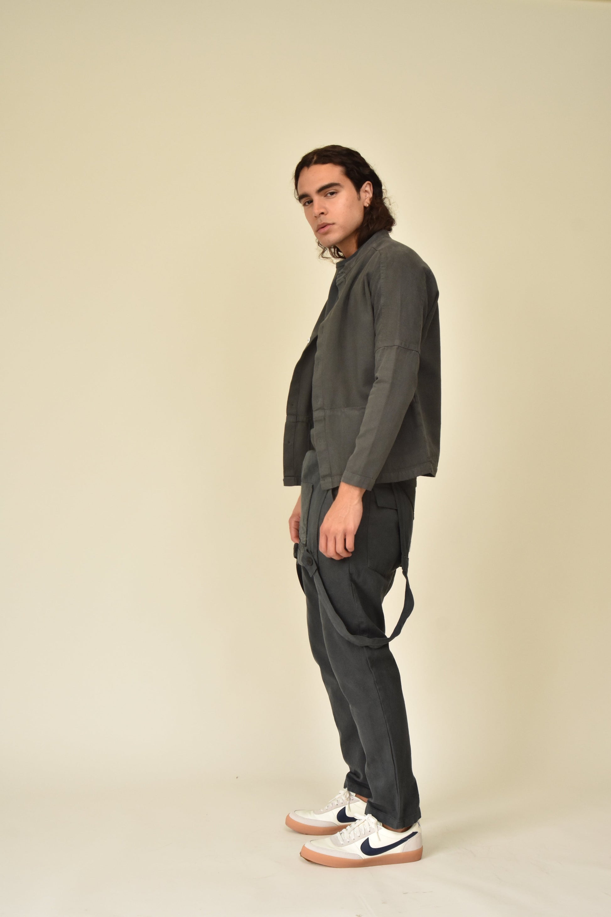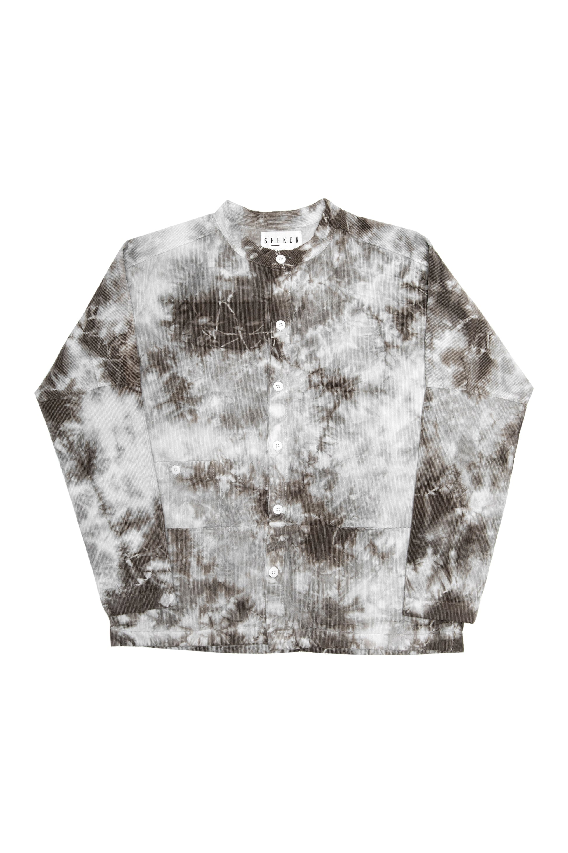 Unisex Organic Sustainably sourced Soft Vine Tie Dye Hemp Cotton Corduroy, Dolman shoulder Chore coat with Mandarin Collar and waist pockets.