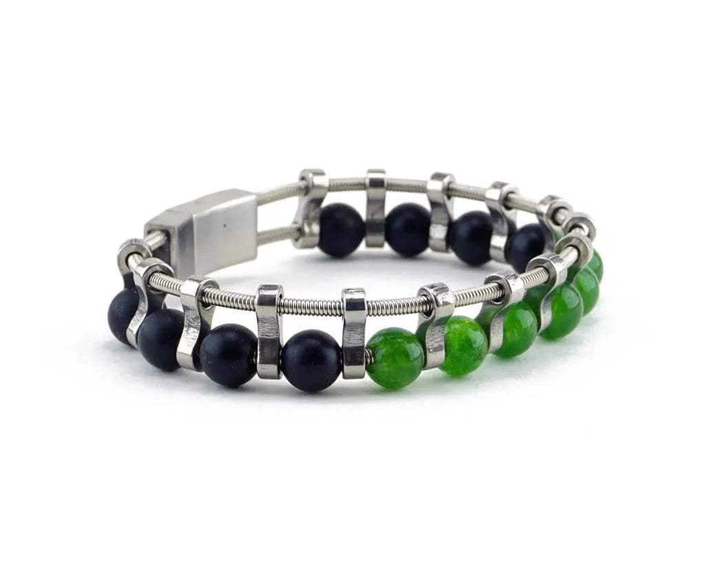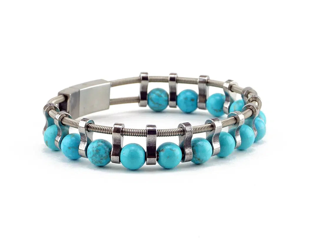 Though we name our bracelets after musicians we know, unless otherwise noted, bracelets are not made from that artists strings. Colors may differ slightly due to variations in the stone as well as calibration of your screen.