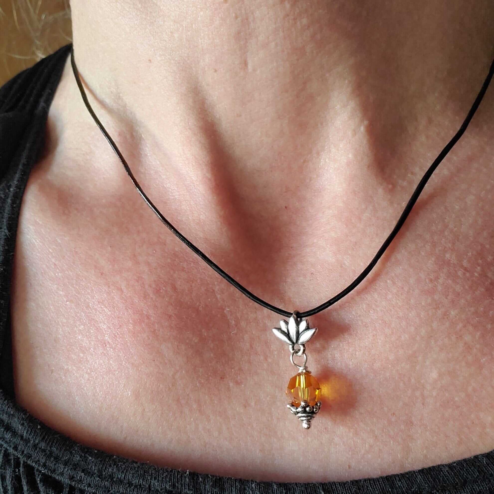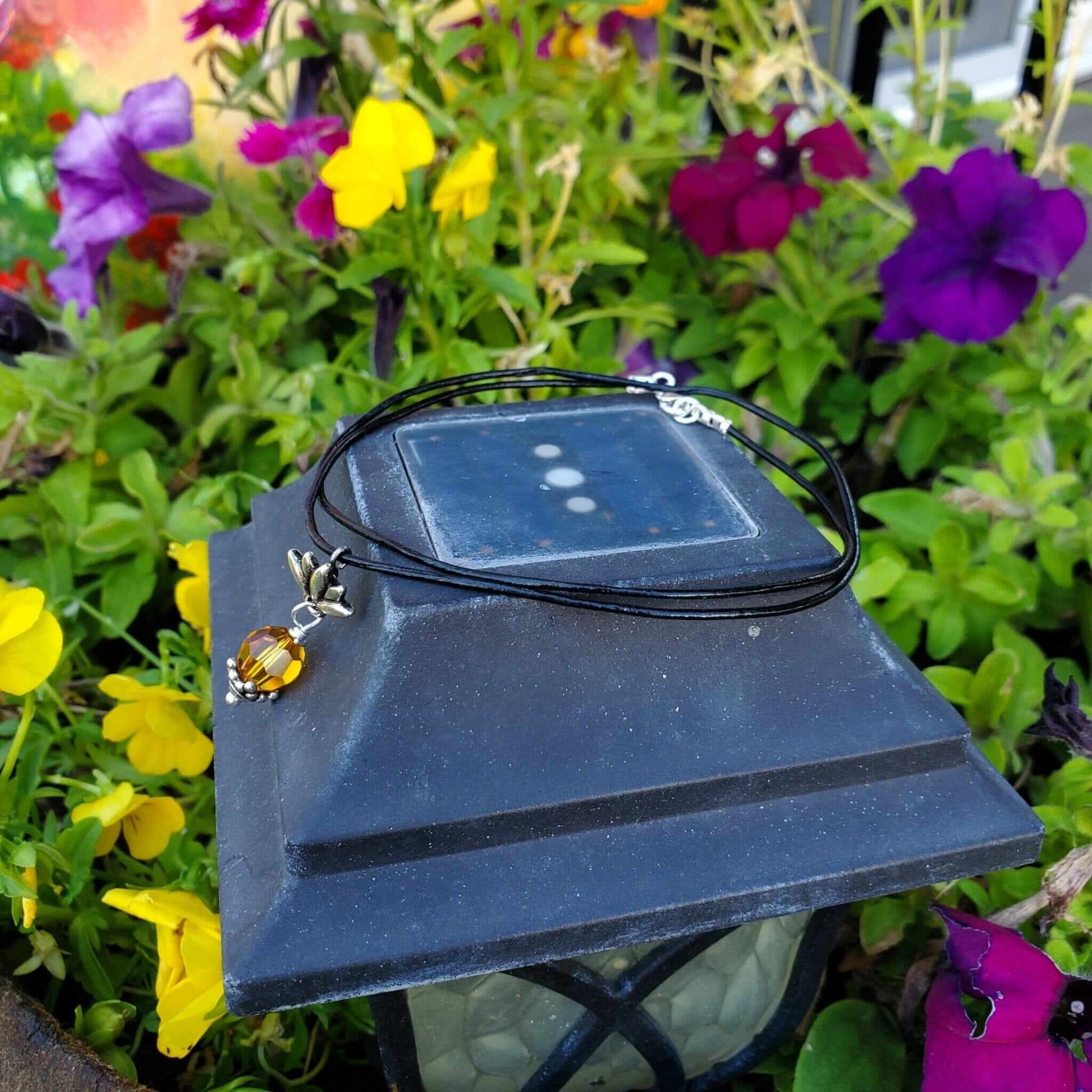 Original Design by Alexa Martha Super cute handcrafted sterling silver pineapple pendant with a 8mm bright yellow sparkly Austrian Swarovski crystal. The pendant suspends from a 18 inch dainty but sturdy 1.4mm leather necklace with sterling silver end caps and lobster clasp. Length of necklace 18 inches