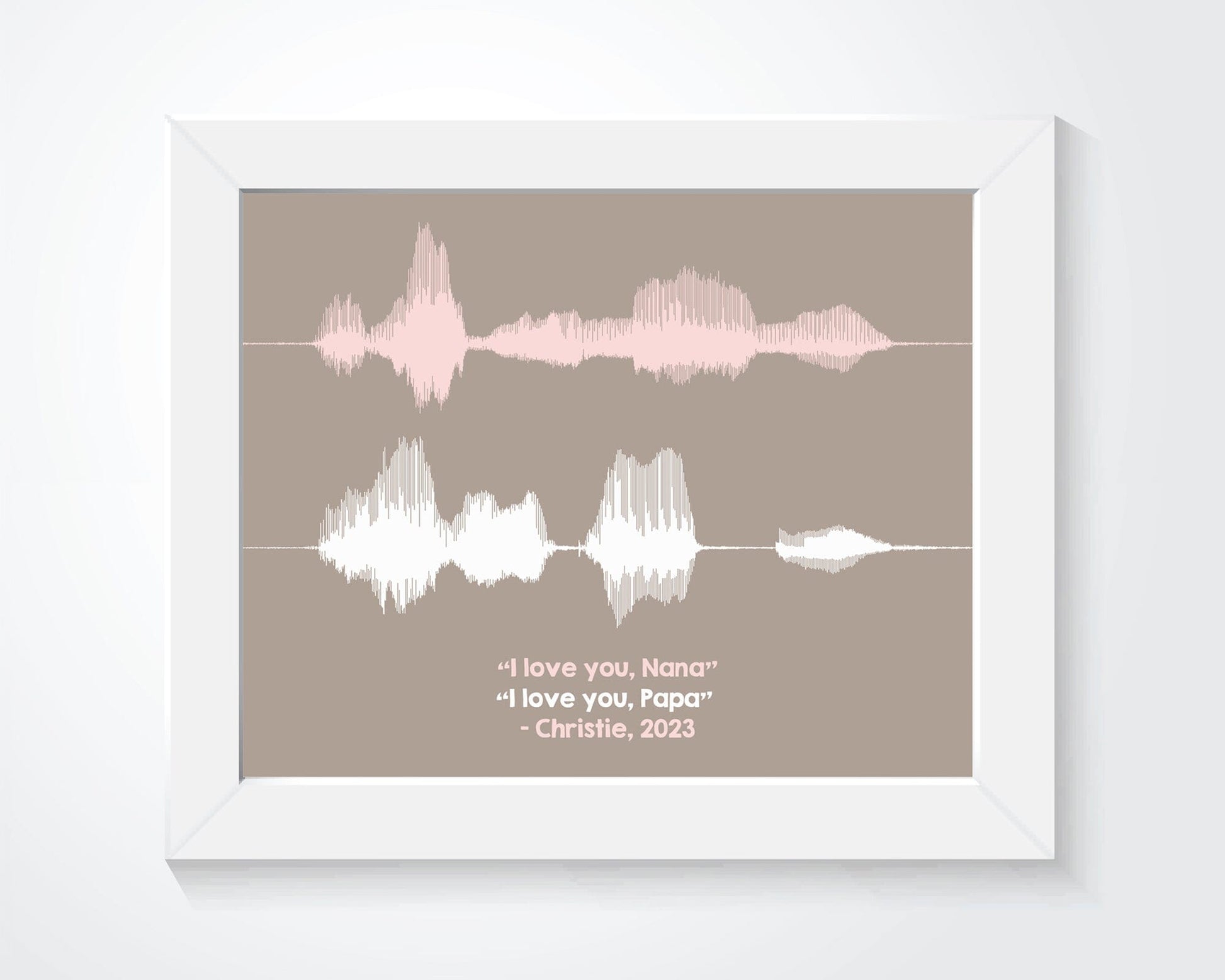 Capture the sweet voice of a child or grandchild saying "I love you" forever. As in the example, you can add extra recordings to your print for each grandparent or include multiple messages from siblings. A gift Grandma or Grandpa will treasure forever.