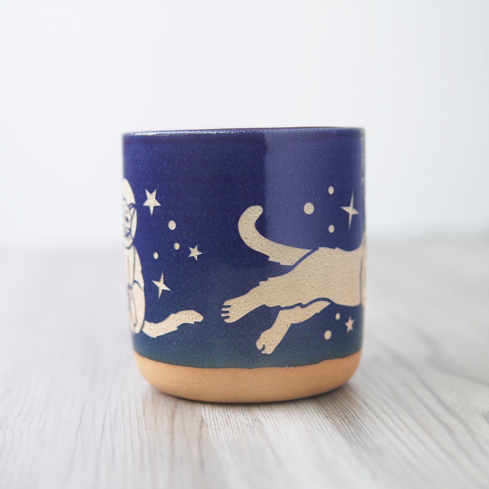Space Cats Mug, Farmhouse Style Handmade Pottery