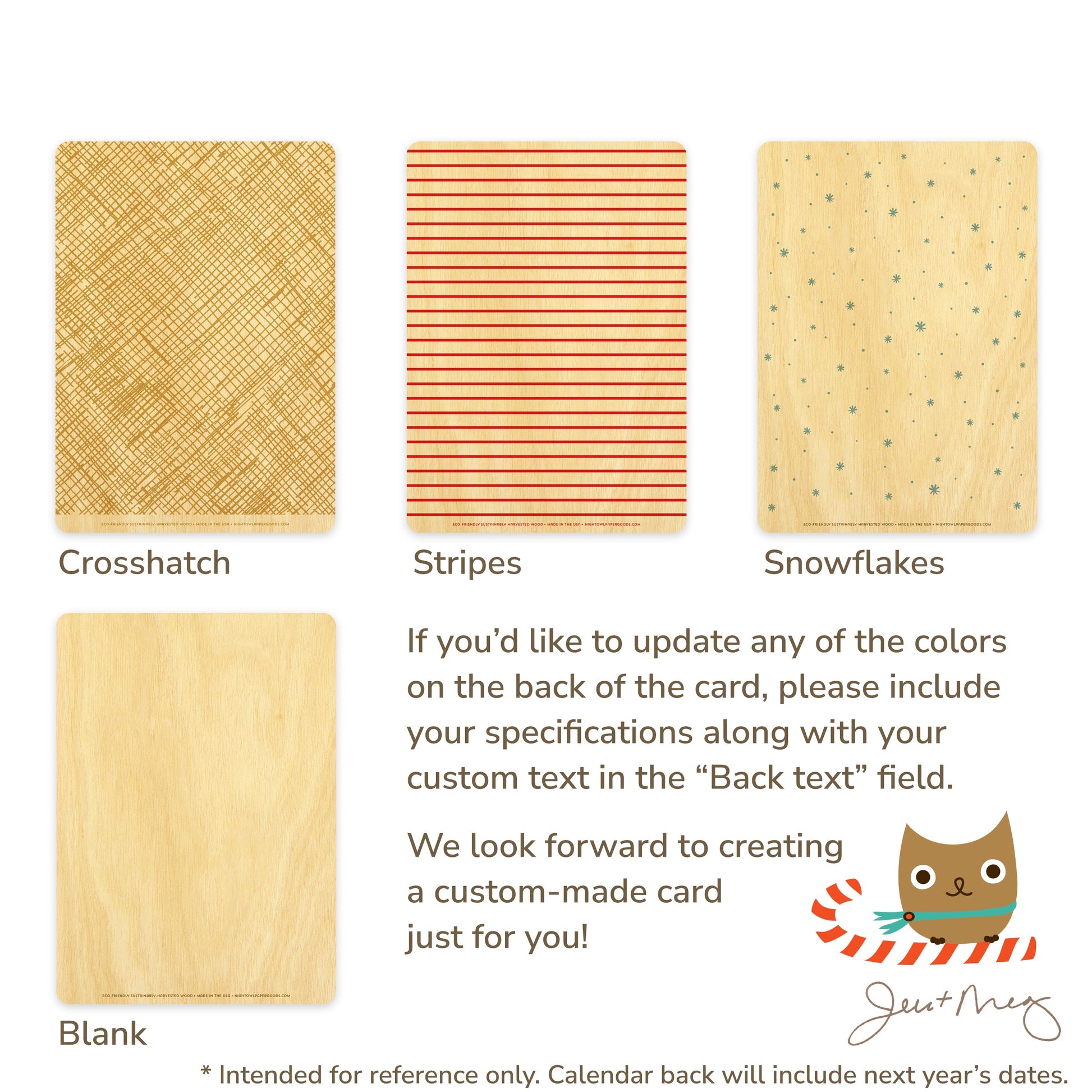 Celebrate the season with our Starry Tree holiday cards featuring a festive red and green Christmas tree with “Merry Christmas” text, set against a snowy sky. Printed on your choice of real wood or eco-friendly paper, these custom cards are simple to customize and perfect for sending warm wishes to loved ones, neighbors and colleagues. To get started: