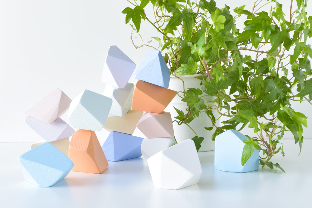 Welcome to the captivating world of our 16-piece "Tahoe" Rock Blocks set. Drawing inspiration from the serene sunsets of Lake Tahoe, Nevada, this set artfully combines soft pinks and mellow creams with vibrant oranges and muted periwinkles. Designed for your modern and aesthetic playroom, these Montessori-inspired wooden blocks, handcrafted in the USA, go beyond traditional toys, offering a peaceful pastel palette that encourages your child to create intricate towers, arches, and imaginative structures.
