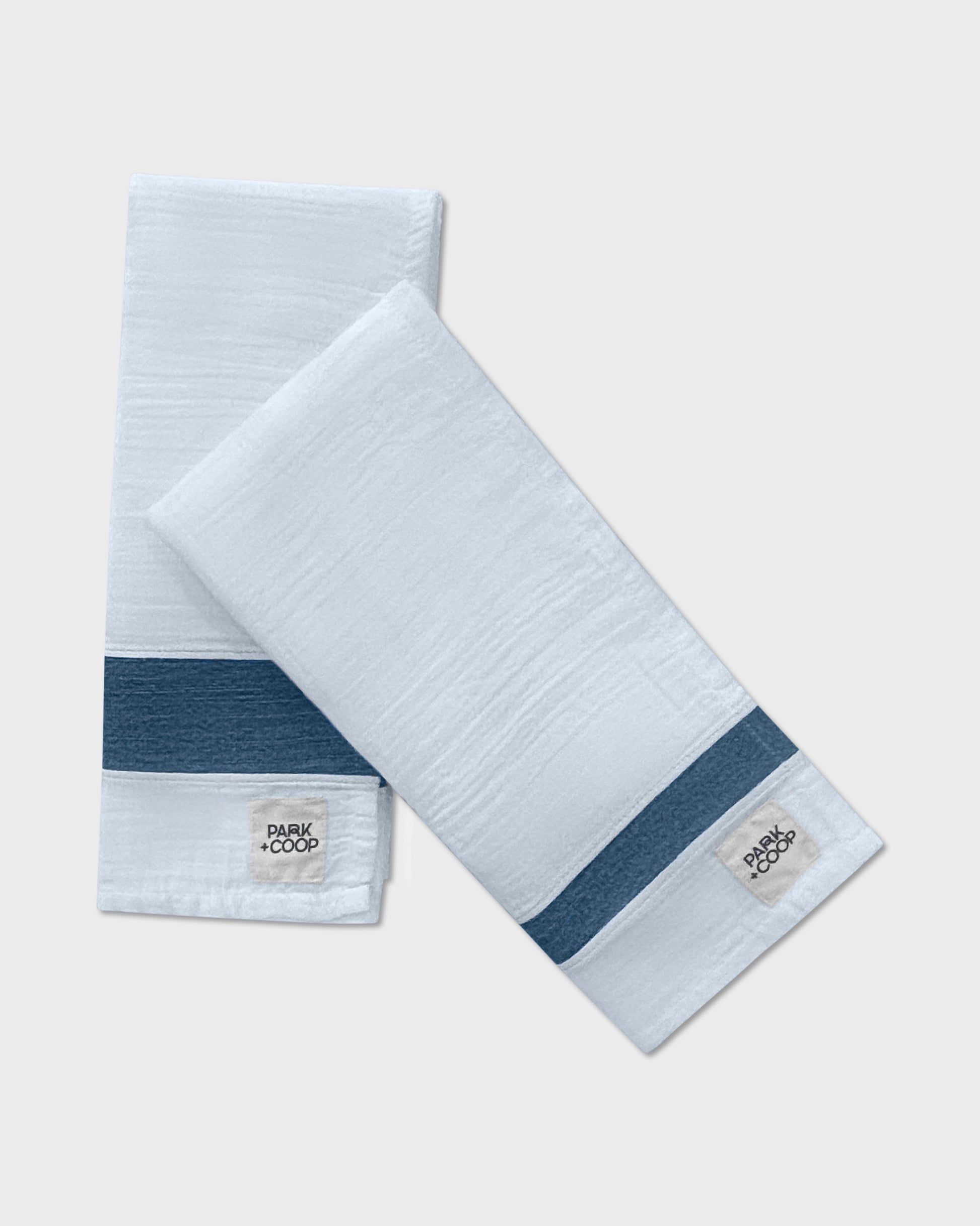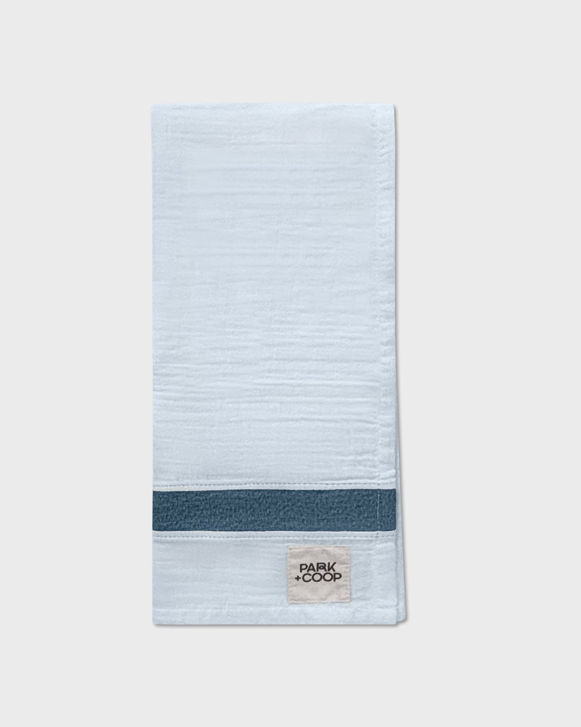 **Want to use your own fabric or that of someone you love to make a memory piece? Once you place your order, we’ll send you a mailer to easily return your fabric to us. To make the towel send a non-stretchy, non-knit fabric at least 20"w x 28" h. To choose your own stripe send us fabric at least 20"w x 3"h. We’ll handle the rest! If we do not receive enough fabric we cannot make your item and you will be charged for the mailer shipping. It's important to note that the Park + Coop brand patch will not be added to custom towel colors.