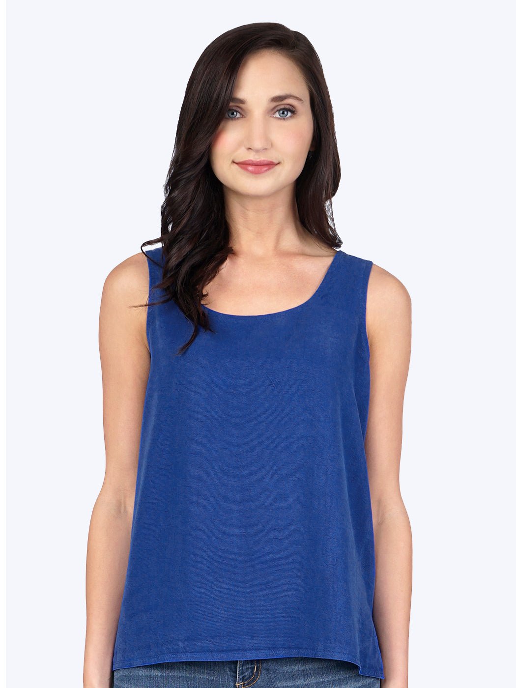 Our woven Crop Tank Top features an elegant scoop neck finished with a simple turn-over hem. This sleeveless, full bodied silhouette offers a graceful drape that sweeps down from the shoulders to a double-needle stitched, square bottom hem that falls just below the waistline. Stylish side slits provide extra wearing comfort and subtle flare to the hips. Garment dyed richness also adds distinctive character to this incredibly versatile silhouette, which is ideal when used as a layering piece, especially worn under stylish robes, dusters, lightweight open front blouses, or even your favorite kid skin leather jacket. This must-have fashion staple is perfect for traveling, smart looking as part of a business outfit, and would make a lovely addition to your weekend wardrobe.