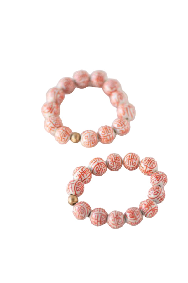 The Barre bracelet brings a tiny bit of elegance to your wrist! This beauty with orange and white hand-painted porcelain beads is designed for the woman who believes that accessories should be both gorgeous and effortless.