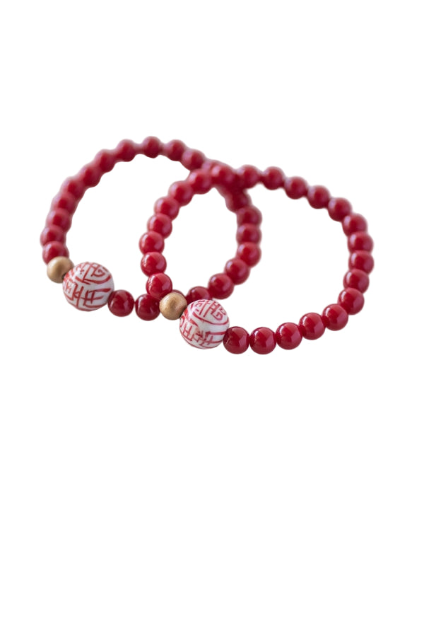 The Darcy bracelet brings a tiny bit of elegance to your wrist! This red beauty with a hand-painted porcelain bead and deep red resin beads is designed for the woman who believes that accessories should be both gorgeous and effortless.