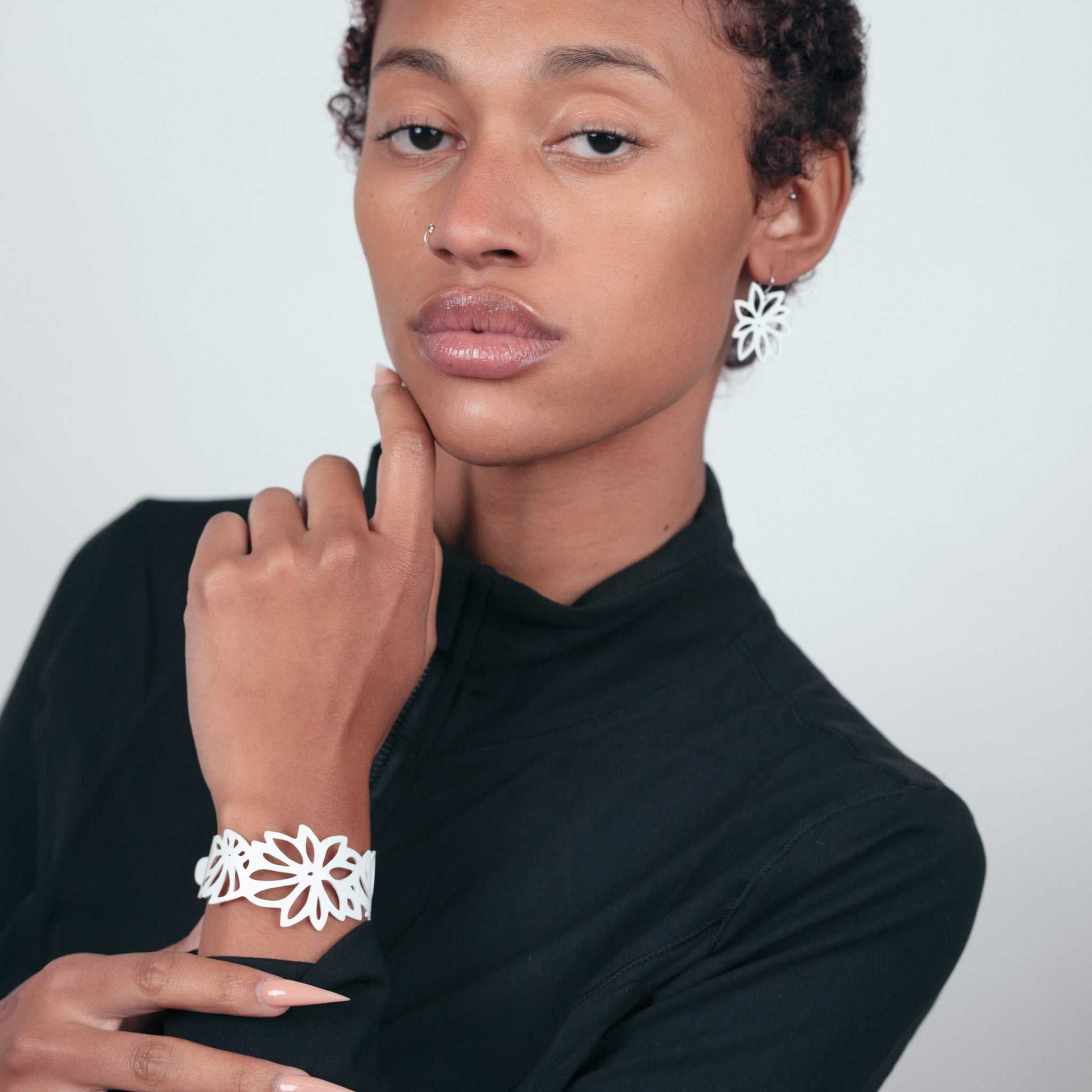 The Tropical Flower Earrings by KADEN & KAI® bring a touch of nature-inspired beauty to your jewelry collection. Handcrafted from repurposed bicycle tubes or Verdasil™ - our signature silicone - these eco-friendly earrings feature a floral design that captures the essence of the tropics.