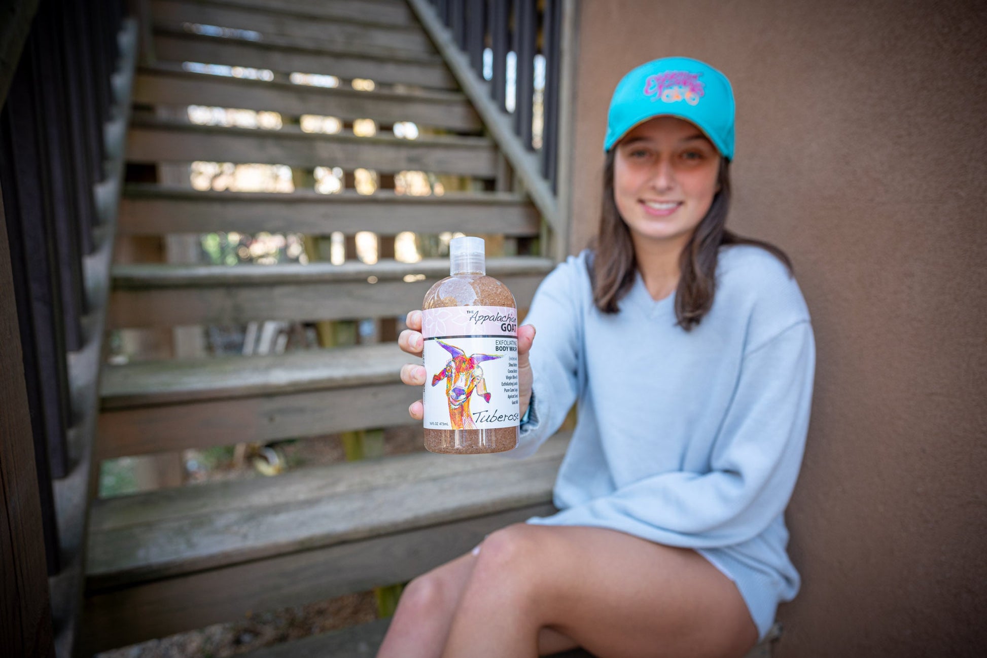 We took our top selling Tuberose Goats Milk Lotion and created an Exfoliating Body Wash to pair with it. This NEW Body Wash is enriched with Shea Butter, Cocoa Butter, Virgin Olive Oil and Goats Milk. These moisturizing ingredients combined with Exfoliating Loofah, Pure Cane Sugar and Apricot Seeds brings you the best of both worlds.