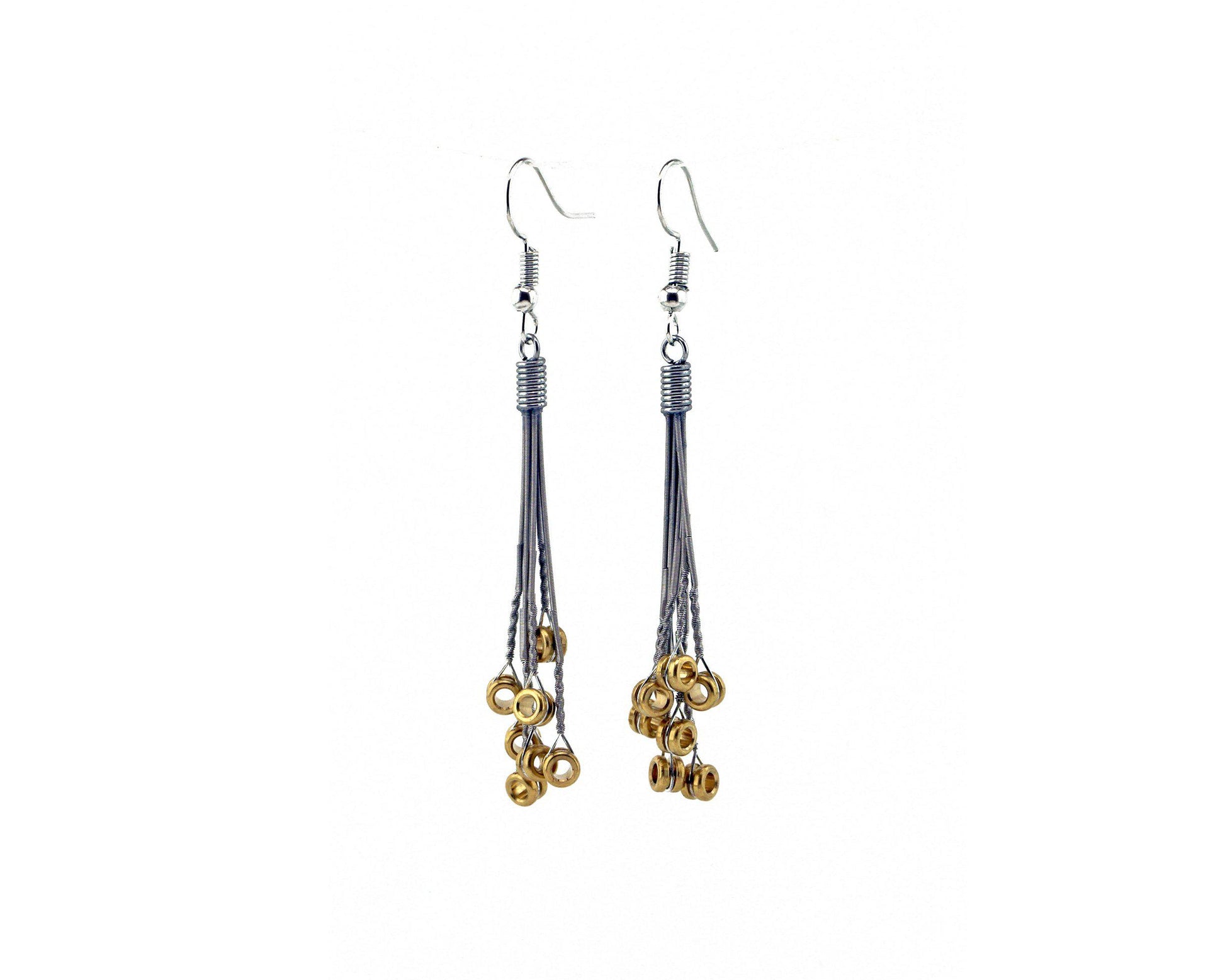 Amp up your look with these killer earrings—the perfect match for our Brass Vanessa Bracelet. Made from the ends of recycled guitar B or A strings (we use whatever’s rocking when we build), and adorned with badass brass ball ends. About 2.5 inches long and hanging on surgical stainless steel hooks, they’re lightweight, loud in style, and built to turn heads.