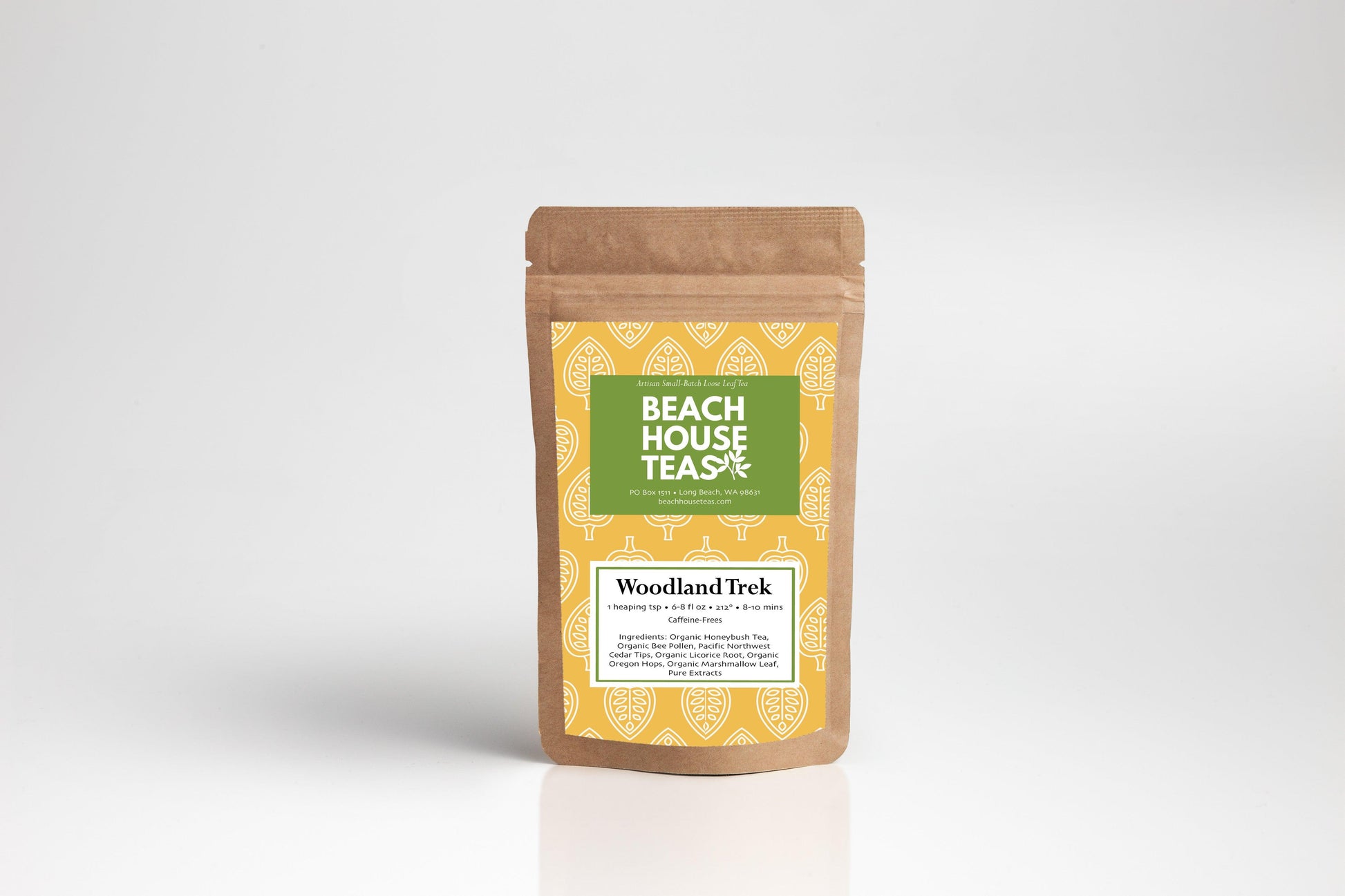 The addition of organic Washington hops imparts a subtle snap, reminiscent of the crisp wilderness air, and a hint of sweetness from bee pollen rounds out the flavor profile, like the gentle kiss of wildflowers in bloom. Infused with organic cedar tips, every sip beckons forth memories of evenings spent camping beneath the starry canopy or hiking the breathtaking cascades, where the scent of the forest and the call of the wild create an ambiance that lingers in your soul long after the journey's end. Woodland Trek is more than a tea; it's an invitation to relive the magic of the great outdoors, where the serenity of the forest and the majesty of the mountains are captured in every aromatic, soothing cup.